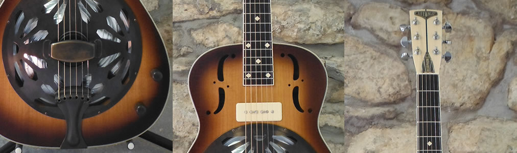 Ručně vyrobená dřevěná resofonická kytara. Tato kytara má bohatý a sametově příjemný zvuk našich dřevěných modelů, originální „Czech Made“ ručně kovotlačené resonátory. Sestavení a konečné seřízení v nejvyšší kvalitě, originální ozvučení naším „Duotone System“. Možnosti úprav – ruční gravírování (jméno, přezdívka atd.).